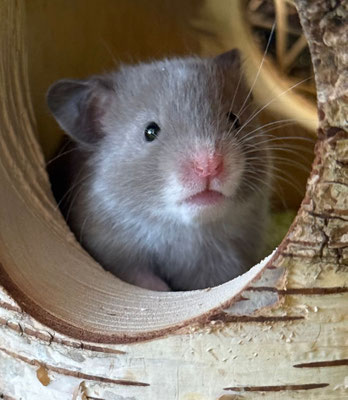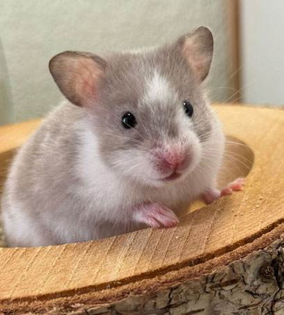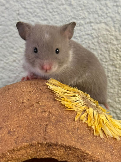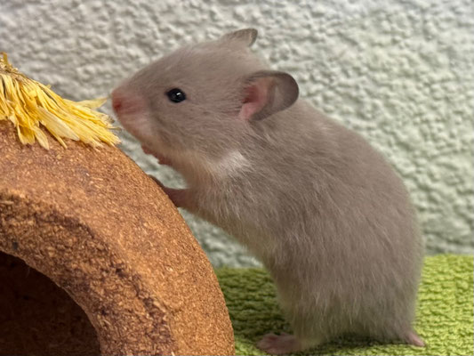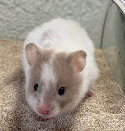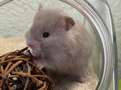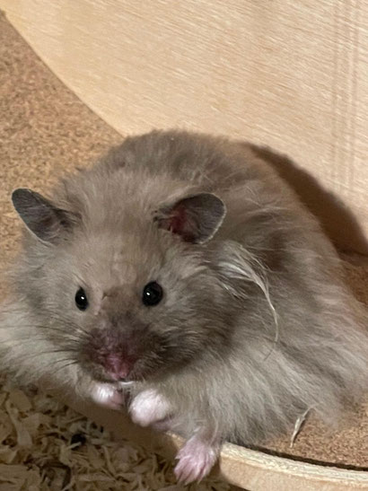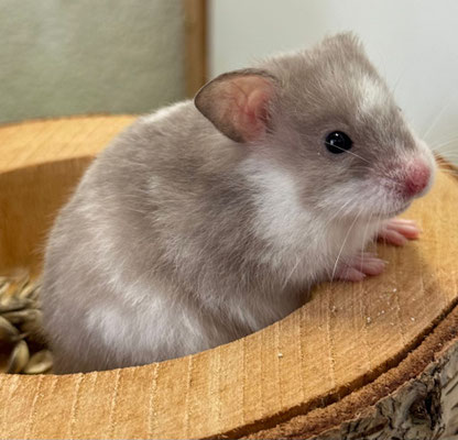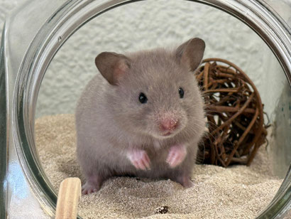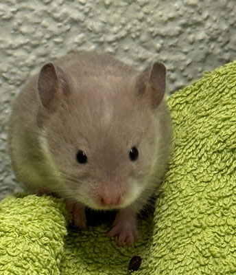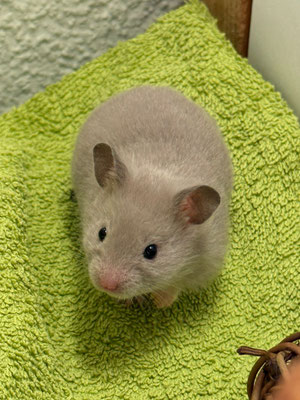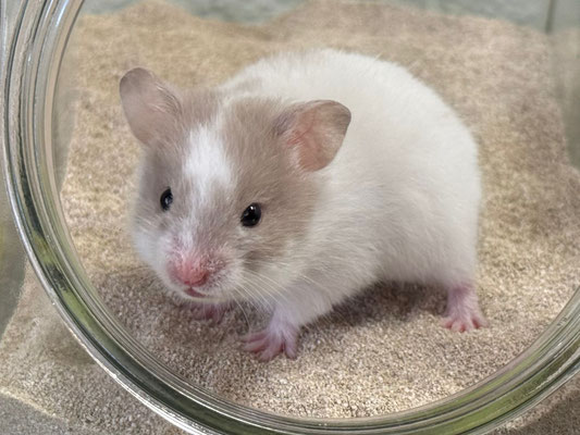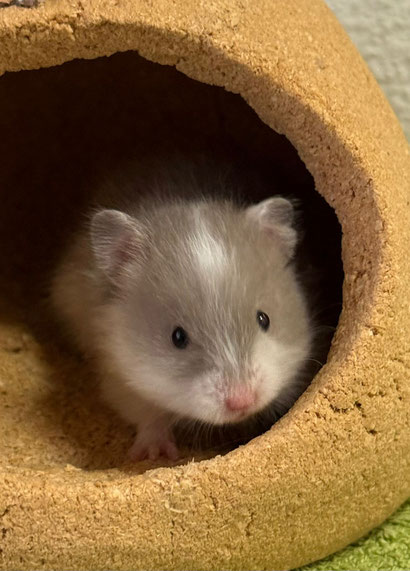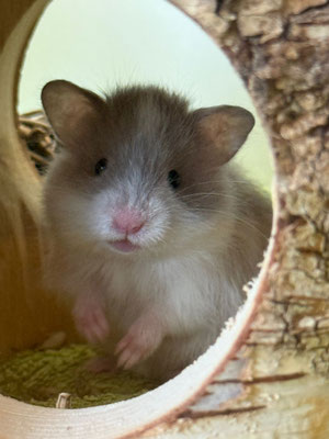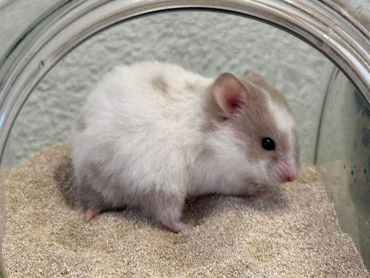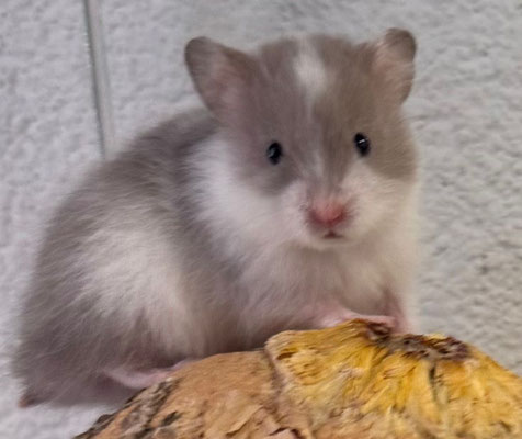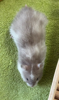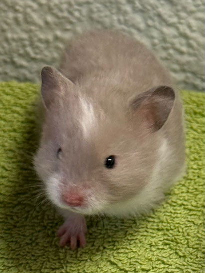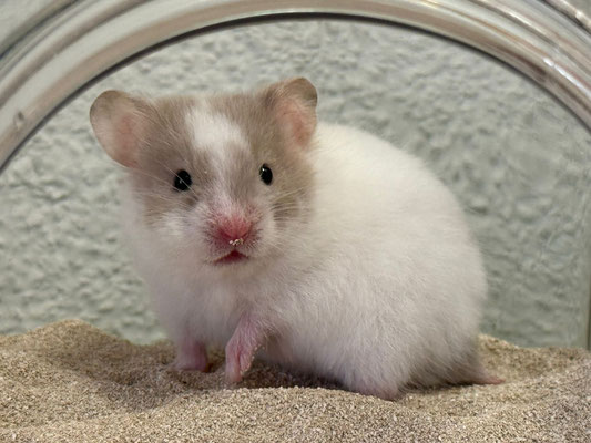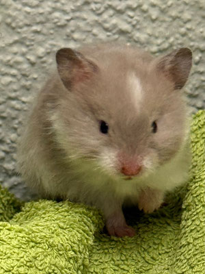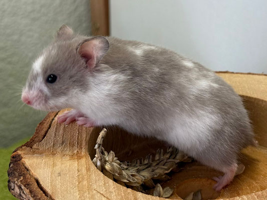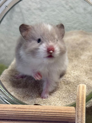 TTS heisst Tortoiseshell (Schildpatt) der Hamster hat braune oder hellgraue Fleckli im Fell verteilt